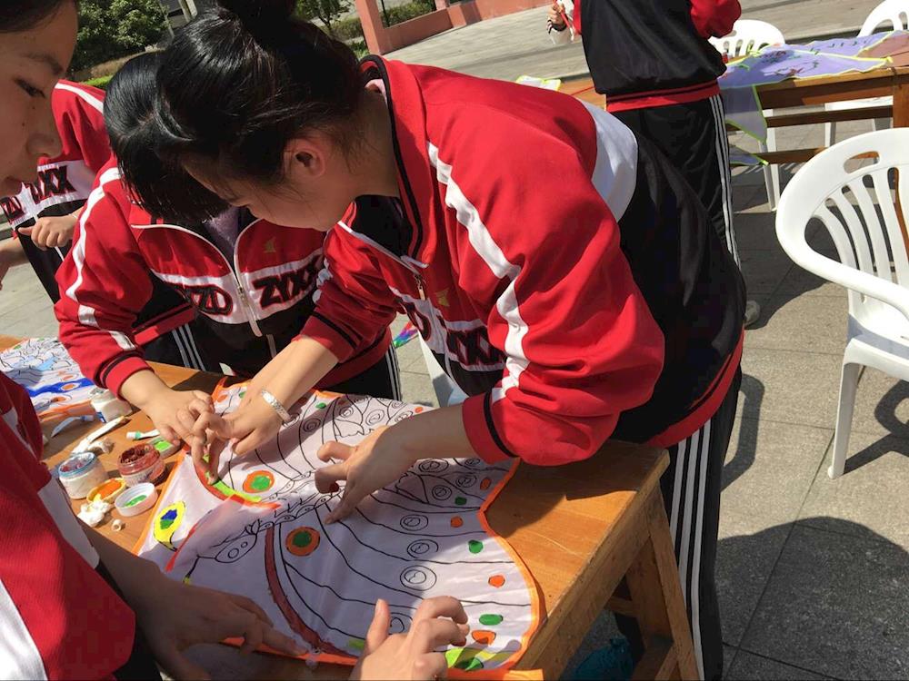 由高考生学系组织的手绘风筝,则将创意和绘画融于一体,学生们绘制充满个性色彩的风筝并放飞于希望的蓝天中,既寓意着参加高考的孩子们能够像风筝一样在更加广阔的天际翱翔,也寓意着风筝飞的再高也勿忘手中长线,心中恩师。