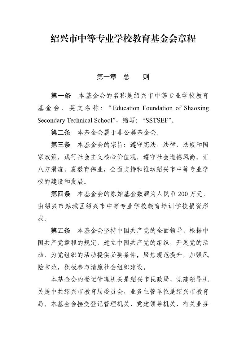 世界杯在线(中国)唯一官方网站教育基金会章程