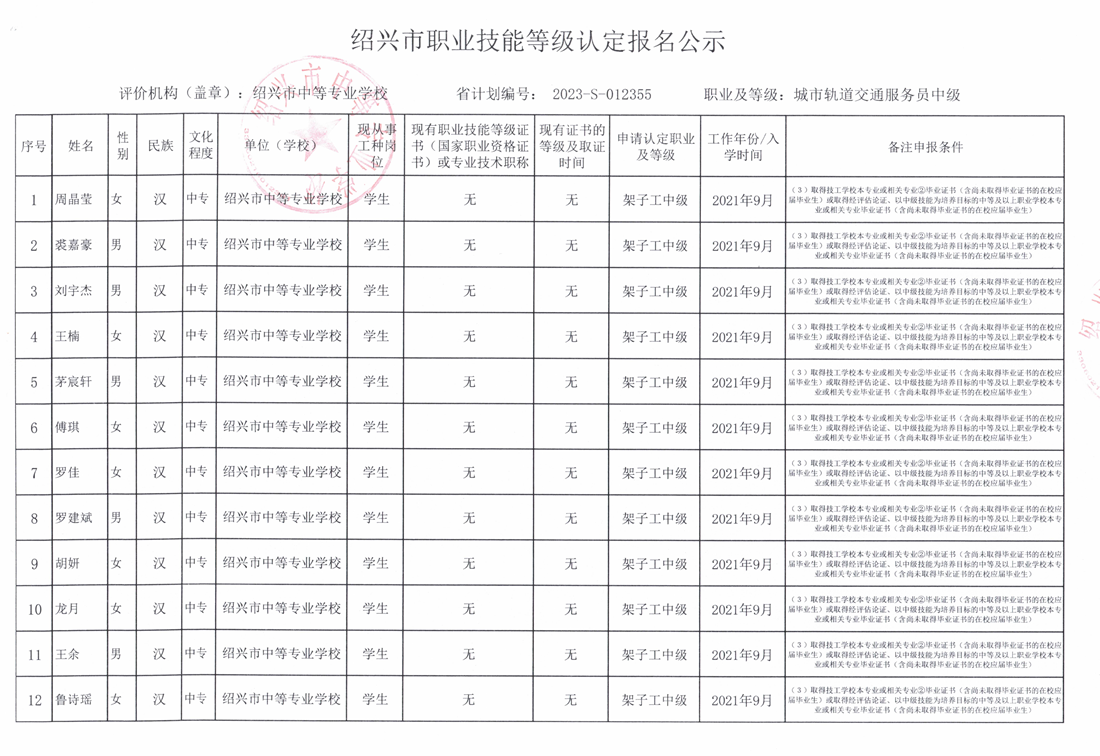 2023年世界杯在线(中国)唯一官方网站12月份城市轨道交通服务员中级工资格审查通过名单公示 来源: 作者:撰稿人和审稿人:实训处 发布时间:2023-12-09 浏览次数: 次 【字体:小 大】 2023年世界杯在线(中国)唯一官方网站12月份城市轨道交通服务员中级工资格审查通过名单公示