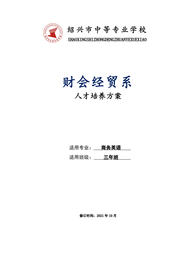 财会经贸系商务英语(三年班)专业人才培养方案