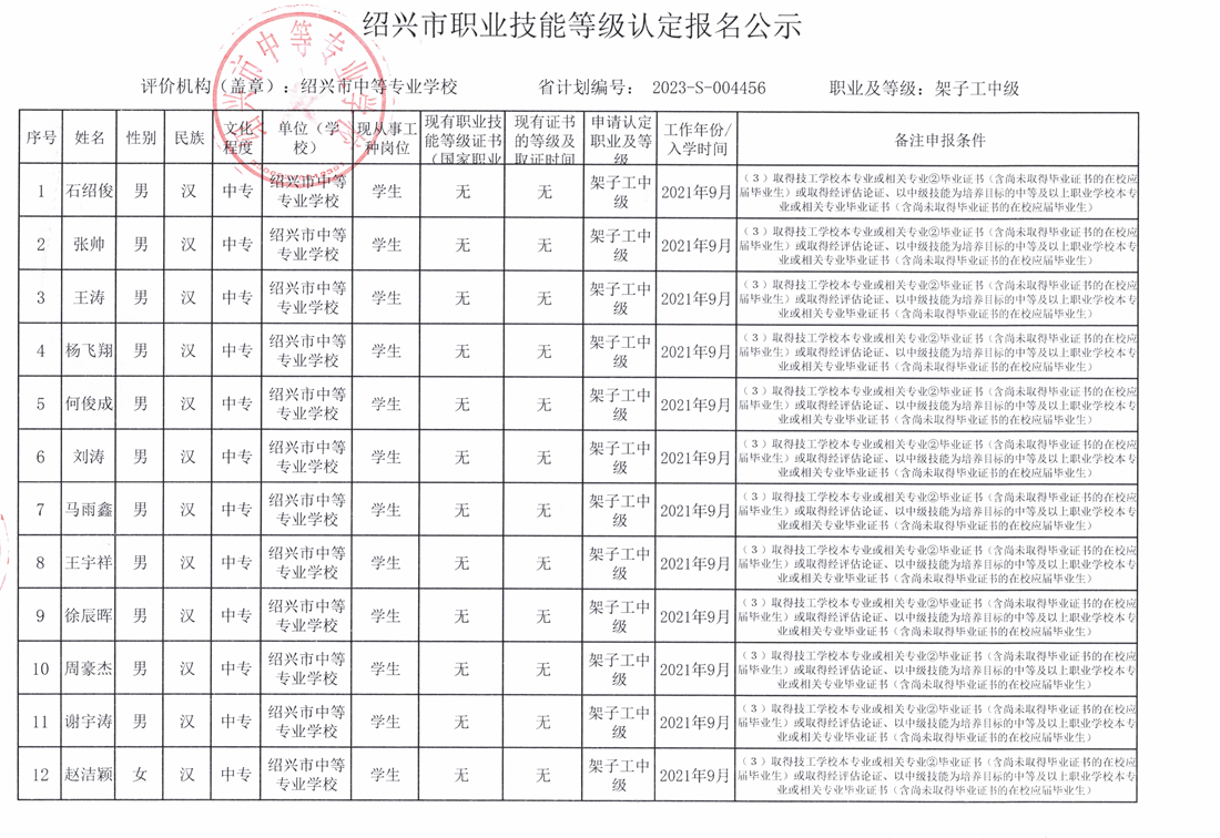 2023年世界杯在线(中国)唯一官方网站5月份第2次架子工中级工报名公示 来源: 作者: 发布时间:2023-05-15 浏览次数: 次 【字体:小 大】 2023年世界杯在线(中国)唯一官方网站5月份第2次架子工中级工报名公示