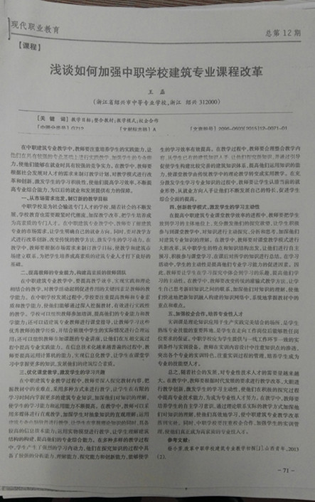 浅谈如何加强中职学校建筑专业课程改革