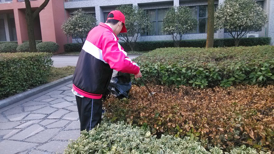 在打扫校园的时候,只要是看见了一点点的垃圾,不管取出“躲”在草丛中的垃圾有多难,同学们总是会“不择手段”用尽各种办法。
