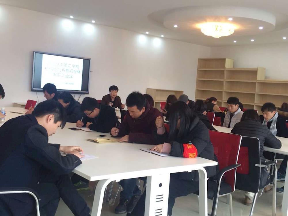 2016年2月16日下午,机械电气系在图书馆学校智慧教室召开2015学年第二学期机械电气系教师期初工作会议,部署本学期相关教育教学工作。本次会议由系主任杭建卫老师主持,系全体教师参加。