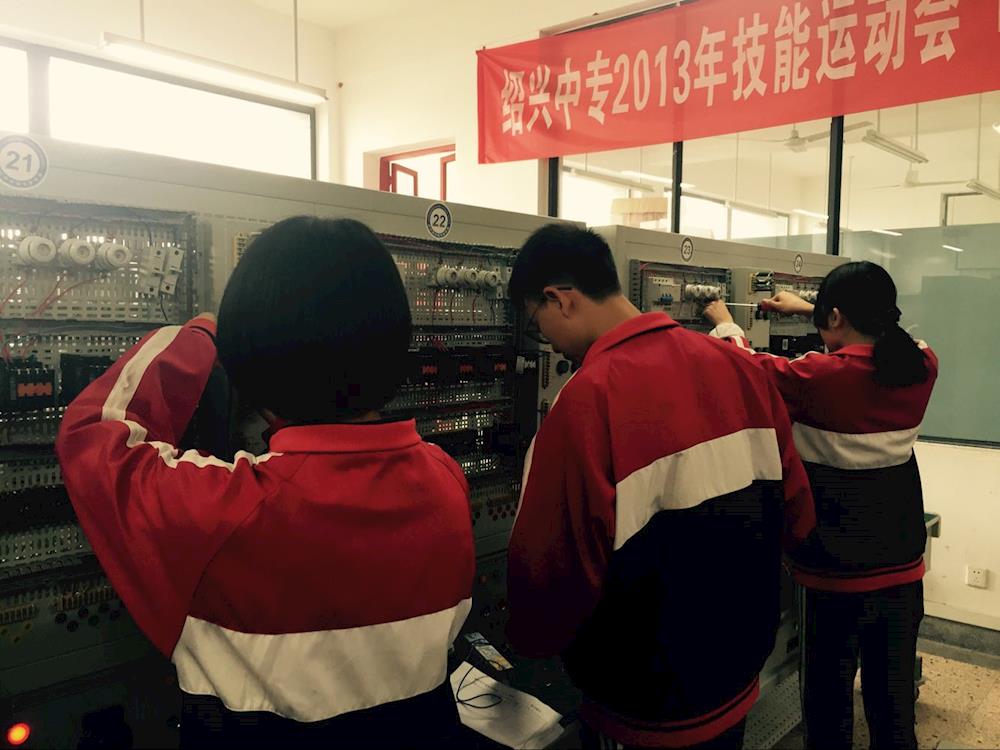 在课上,老师先给同学们讲了电动控制电路的原理,让同学们了解到了一些电路的基本知识,然后让到工作台上进行实际操作,同学们都热情饱满的在工作台上进行拨线、接线等操作,同学们看到工作台上自己亲手接出来的一个一个的线路,脸上都露出了微笑。接下来,老师一个一个为同学们检查线路,为同学们找出电路中的错误,讲解了正确的接法。 在下课前15分钟,老师让同学们整理好自己的工具和位置,并讲解了在以后的接线中应该要避免的一些错误。