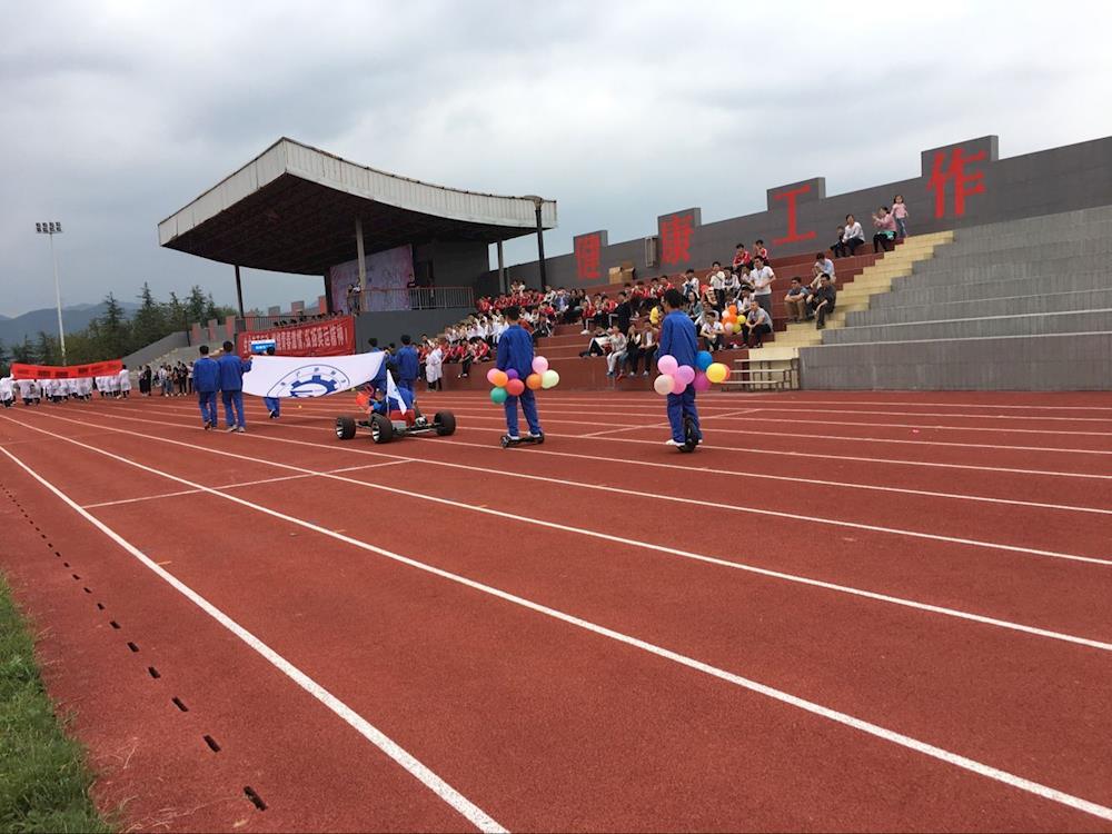 下午,篮球场上人声鼎沸、彩旗招展,各班学生都集结在此,他们的装束成为本次运动会中一道亮丽的风景线。随着校领导宣布运动会开始,各系的班级站成整齐的队列,迈着有力的步伐,依次通过主席台。机械电气系的入场别出心裁,随着机车驶入赛道,机械电气系的师生也迎着阳光,展示着他们的蓬勃与朝气。其中15城市轨道班身着航空服,手拉行李箱,尤为吸引眼球,他们步伐整齐划一,凸显专业特点。有的班级穿着可爱的玩偶服,有的班级服装整洁清爽,显出学生的青春与活力。