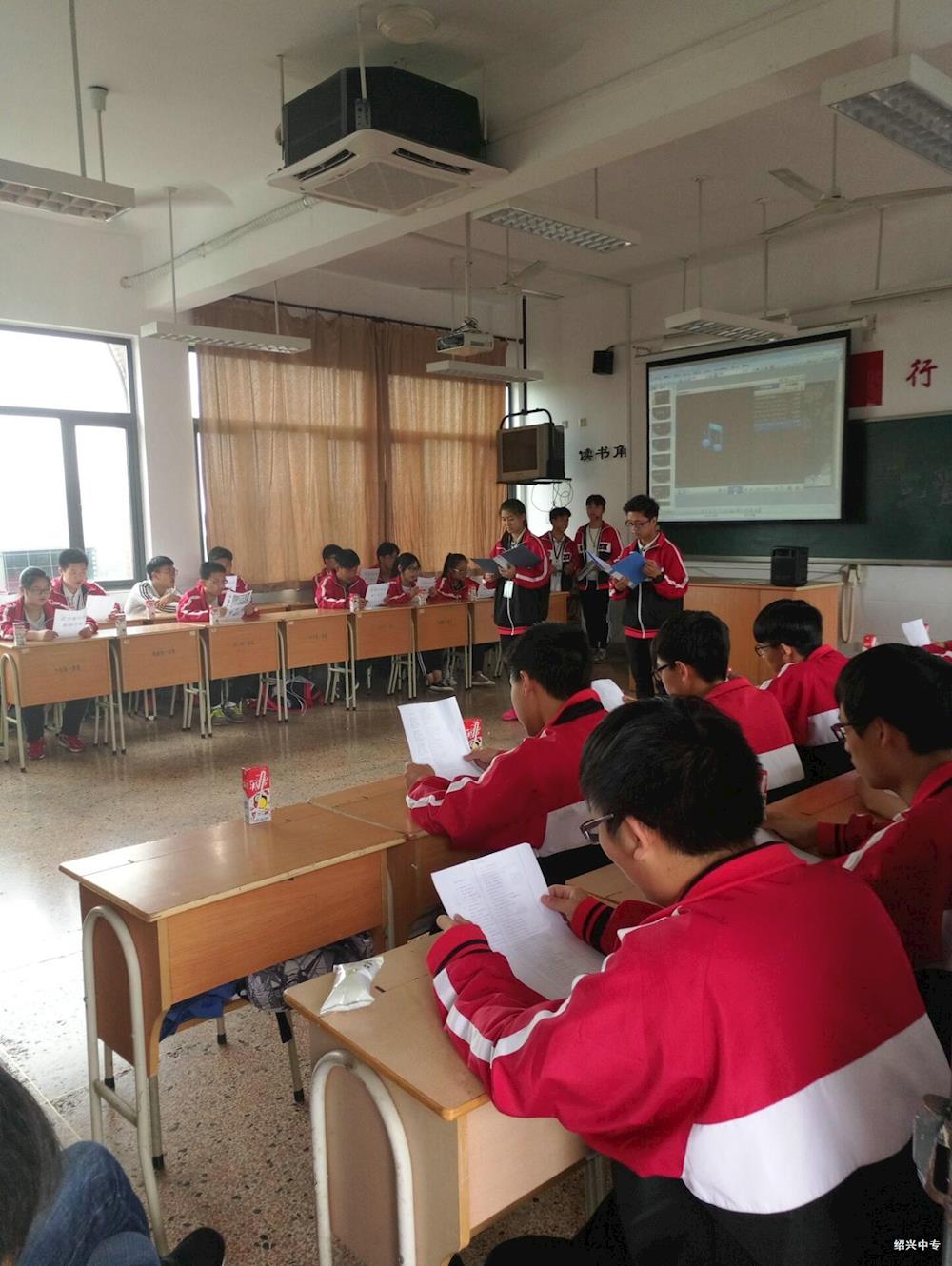 班会开始,主持人带领大家朗诵艾青的诗《时代》。然后,同学们表演了小品《爱劳动、爱祖国》,传达了认真、责任、纪律的含义,小演员的精彩表演唤起了听众深藏心中的爱国之情。随后,全员演唱国歌,至此,同学们已对爱学习、爱劳动、爱祖国有了更深的了解,在活动的过程中,抒发了对祖国、对学校的深深热爱,表达了对同学的关爱之情。接着,在视频中,家长对同学们的期望与鼓励带给了同学们莫大的鼓舞。