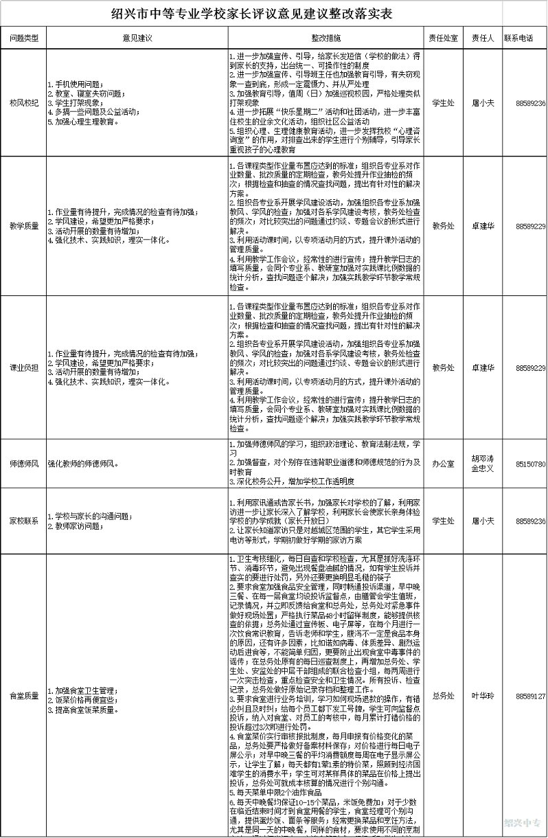 世界杯在线(中国)唯一官方网站家长评议意见建议整改落实表