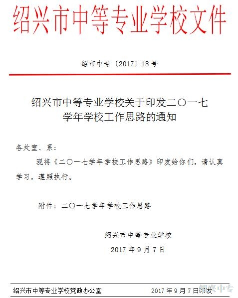 提升内涵建名校 培育特色创品牌 ——绍兴中专2017学年学校工作思路