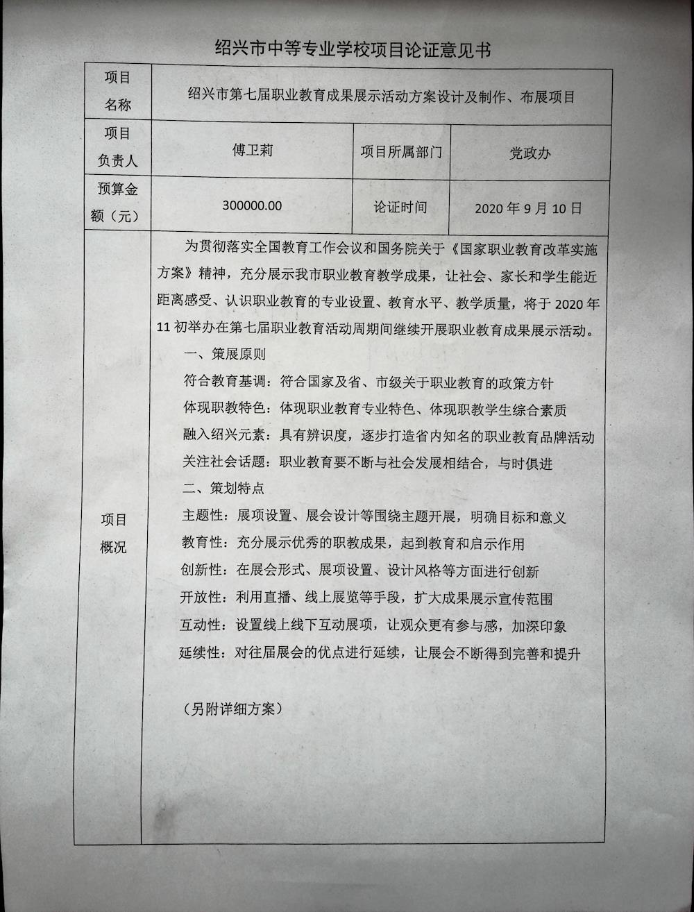 世界杯在线(中国)唯一官方网站【绍兴市第七届职业教育成果展示活动方案设计及制作、布展】项目的论证结果公告