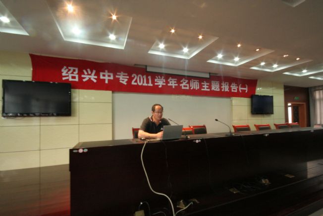 2011年9月16日下午,绍兴中专举行了本学年的第一期名师主题报告。主讲人是学校招生就业处处长、市级名师金忠义老师,报告的主题是《英国培训启示》。