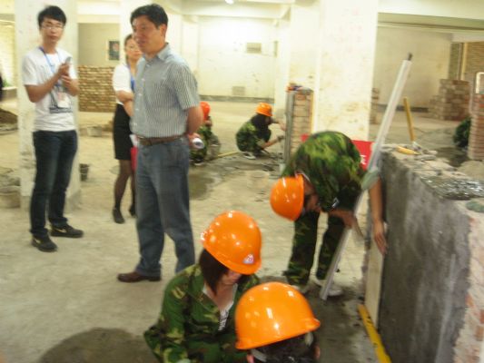 6月2日,10级和09级“3+2”班级同学根据学校的统一安排,集中参加了校级项目的比赛。校领导和评委们对众多项目一一作了考评。在“建筑镶贴与抹灰”项目竞赛现场,娄华水校长仔细察看饰面砖有没有空鼓脱落、色变、接缝不平直等情况发生,对同学们的镶贴与抹灰成绩表示满意,并和担任实训指导兼评委的老师一起总结实训工场建设的经验。王成相书记和邵国成副校长对学生独立完成的花型逼真、花纹精细、层次清晰的转移印花产品表现出浓厚的兴趣,并向染整教研室主任兼评委的王飞老师提出了用中国红、中国黄等色彩来制作其他款式、品种的转移印花产品的富有建设性的建议。