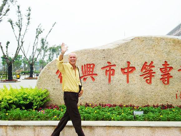 2009年9月1日是绍兴中专学生报到的第一天,在众多报到的师生中,一个身材高大、热情开朗的外国人特别引人注目。老外叫斯帝夫,是绍兴中专特别聘请的外籍教师,来自英国的著名城市伯明翰,今年50岁,他今天在绍兴中专外语学区506办公室报到上班。