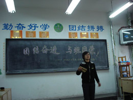 2008年12月4日下午,为了促进班级的团结,增进同学之间的友谊,激励学生奋发向上的斗志,我班举行的“团结奋进,与班同荣”的全校观摩主题班会。
