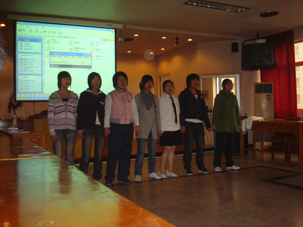 在12月5号下午,我们08国际商务班举行了名为“交融的心”的全校观摩性班会。主要是以团结为话题展开。如果把班级比喻为一个沙堆,那每位同学都是沙堆里的一粒沙子,离开谁都不能组成沙堆。我们的班级也是如此,是团结的力量让我们相聚在一起,共同为班级争光,奋斗。班会一开始就在音乐中播放了一系列记录我们进入中专以来的足迹的照片。同学们在感动之余踊跃发言,在接下来的游戏、歌曲串唱、手语表演、大合唱中均有精彩表现。