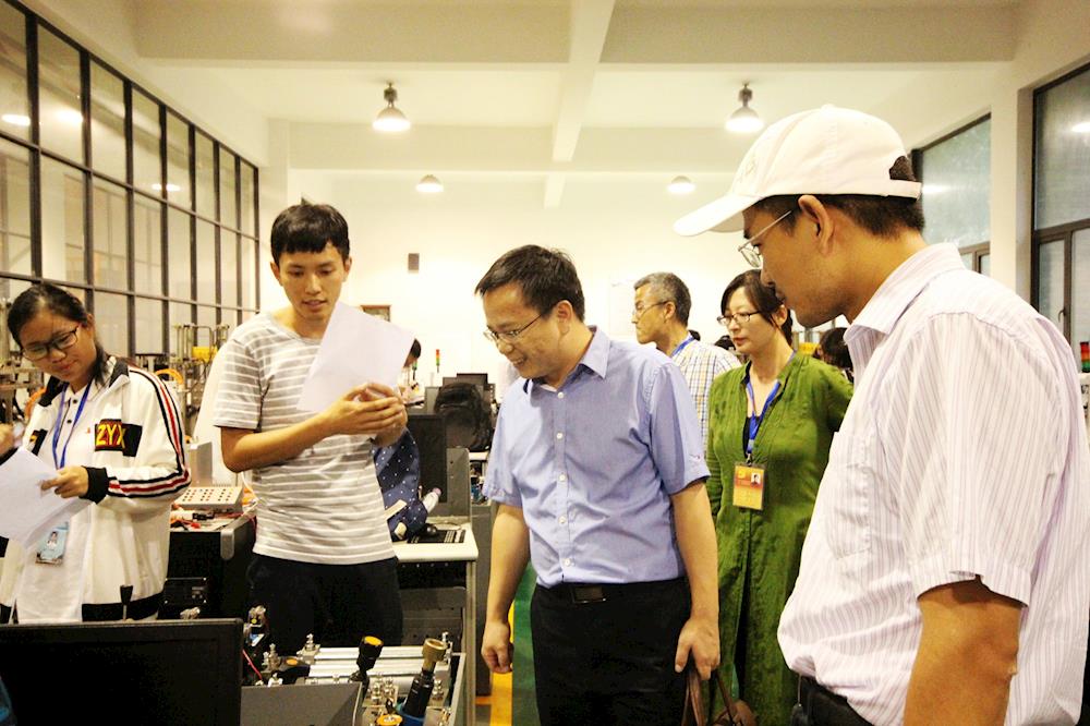 督查组一行通过查、访、探、问、听等方式,全面了解了学校教育教学工作的开展情况。督查组首先在邵国成校长的带领下参观了学校的“快乐大本营”学生社团活动中心,并认真听取了邵校长对学校的办学情况和校园文化、社团建设等方面工作的细致汇报。在社团一条街,“摄影社”、“国学社”、“美食社”、“创客联盟”等精品社团得到了督查组的高度肯定,督查组与活动师生展开了亲切地交流,并深入了解了师生们在社团活动过程中的心得和收获。接着,督查组走访了学校的实训工场。在实训工场,对各类技术设备的种类、功能、学生的技能学习情况等进行了详细的了解,尤其是学校数码印花实训工场、建筑实景式实训工场、黄酒业人才孵化园等先进的实验实训场地、设备和“理实一体”的教学模式给督察组留下了深刻印象。在此基础上,邵校长还向督察组详细汇报了学校专业师资的配备情况,技能大赛的获奖情况和学生升学、就业情况。