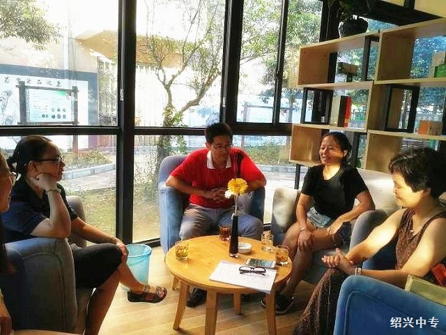 绍兴中专教师正在与开化职业中专教师探讨