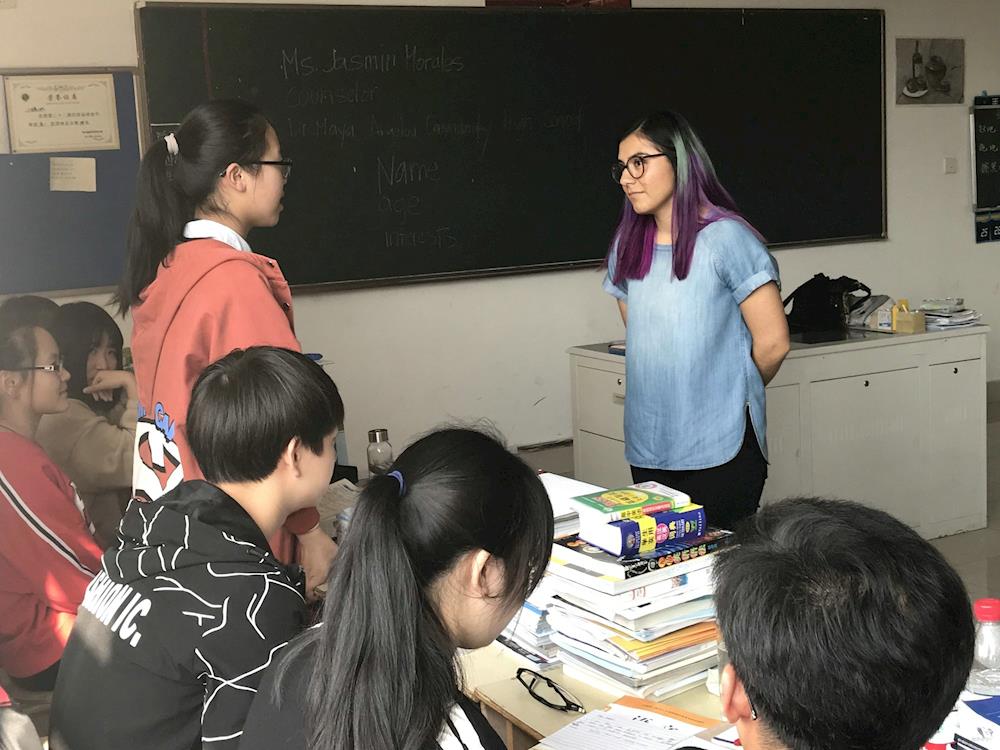 上午,来自越秀姐妹学校美国玛雅安杰卢高中的5位外教开出了公开课,英语教研大组的教师们 分别选择了不同的班级听课。美国外教的授课轻松自然,他们鼓励学生们参与讨论、积极发言,同学们浸润在英语的语言环境里,也能积极地回应外教,围绕课堂主题进行英语交流。观摩教学后,美国教师进行了教学管理座谈和升学指导讲座,中美双方教师交流学习、研讨教学。