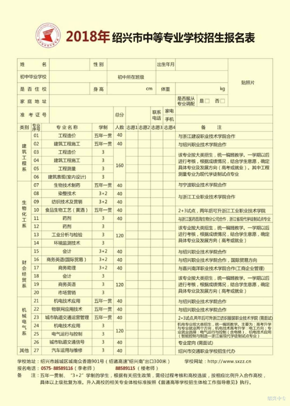 答:绍兴市三区外考生持中考成绩直接到我校填写《世界杯在线(中国)唯一官方网站2018年招生报名表》确认录取。