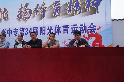 入场式过后,於芳校长致开幕辞,她回顾并肯定了学校蓬勃发展的体育工作和取得的累累硕果。我校在技能竞赛、高考等方面均取得了可喜的成绩的同时积极开展校园特色体育文化活动,伴随着“每天运动一小时,健康工作50年”的运动宗旨,学校先后开展了“大课间慢跑”、“健康体质测试”、“秋季田径运动会”、“教职工气排球比赛”、“校园吉尼斯”等特色体育活动。她希望同学们在运动会期间,感受到体育之美,体会到体育运动的乐趣,养成锻炼的良好习惯;希望全体运动员积极响应“更快、更高、更强”的奥林匹克精神,重视过程、享受过程,全力以赴取得成绩、赛出风格。她衷心祝愿体育健儿们能在这次运动会中取得运动成绩和精神文明双丰收,并预祝学校第三十四届阳光体育运动会取得圆满成功。随后,运动员代表和裁判员代表分别代表全体运动员和裁判员进行了庄严的宣誓。