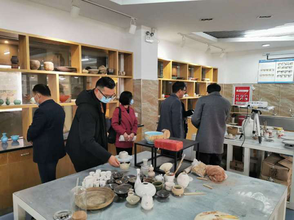 ——绍兴市非遗中心领导来校考察绍兴花雕制作非遗教学基地建设